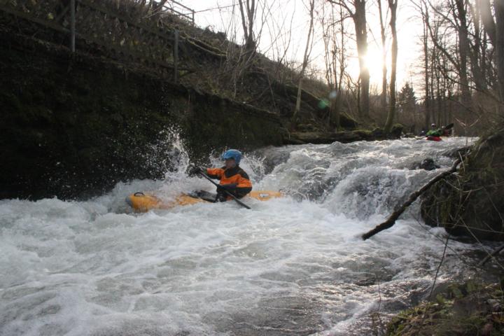 Für einen Start ab Volkringhausen reichte der Pegel noch aus. Kurz nach dem Einstieg kommt auch schon das Highlight der Hönne: der Hönne-Katarakt (der sogar als „echtes“ Wildwasser bezeichnet wird). Den Katarakt kann man übrigens nicht von der Straße aus sehen, er versteckt sich hinter dem Bahnhof Binolen.
