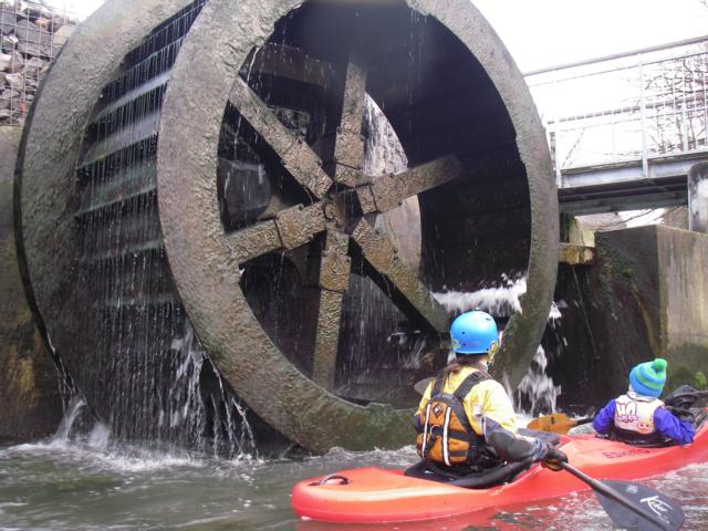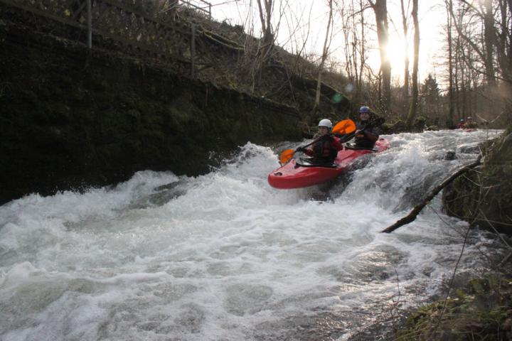 Einige wagemutige oder umtragfaule befuhren das Wehr dann noch und wurden dabei ordentlich nass.