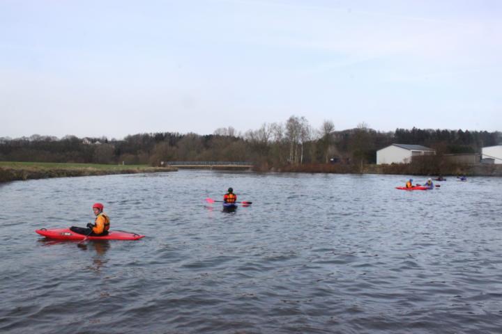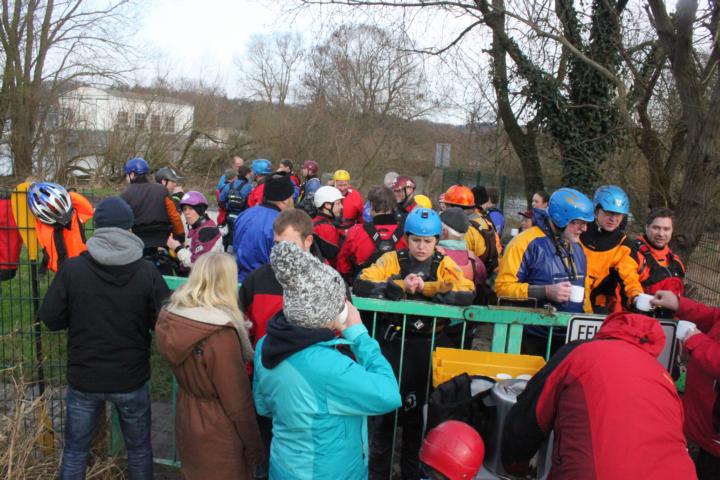 In Battenfelds Wiese in Menden startete dann die eigentliche Eisfahrt, neben Paddlern aus anderen Vereinen, stiegen die schwächeren Fahrer vom KCW dazu, darunter auch Samuel und ich wechselte meinen Einer gegen den Topo-Duo.