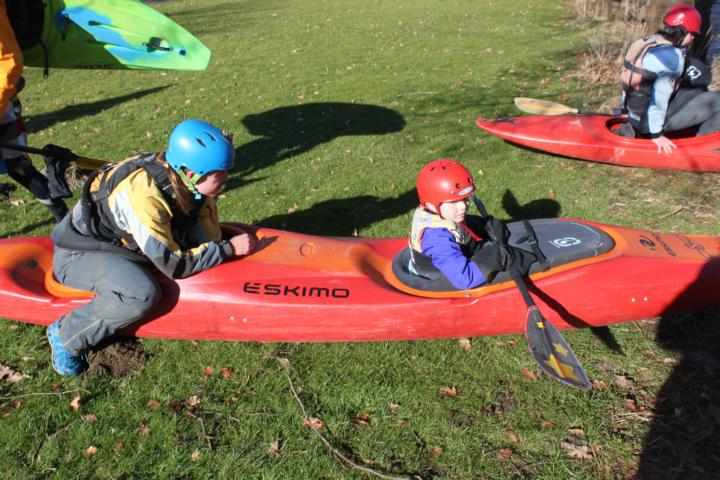 Die verhältnismäßig hohen Temperaturen hatten mich dazu bewogen, Samuel zu fragen, ob er auch mitpaddeln wolle. Er war sofort Feuer und Flamme, also ging es im Zweier auf die Wenne. Außer uns beiden, waren einige Leute vom KCW mitdabei und Samuels Groß- und Urgroßeltern. Insgesamt waren wir eine Riesentruppe (zumindest für Februar, bzw. für nen Kleinfluss).