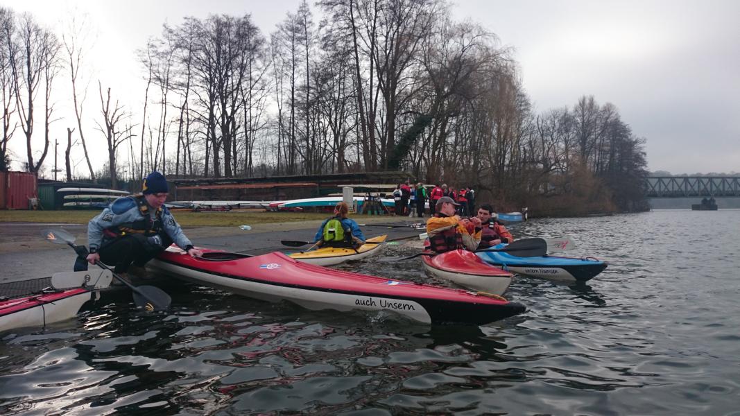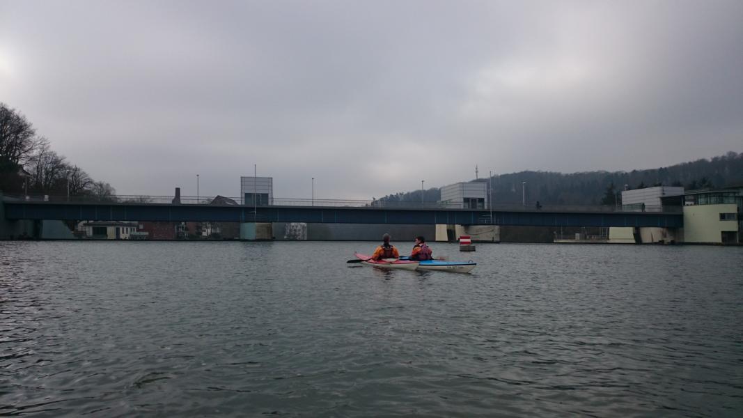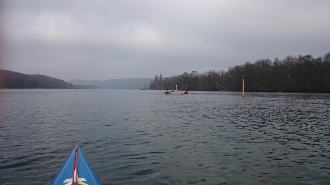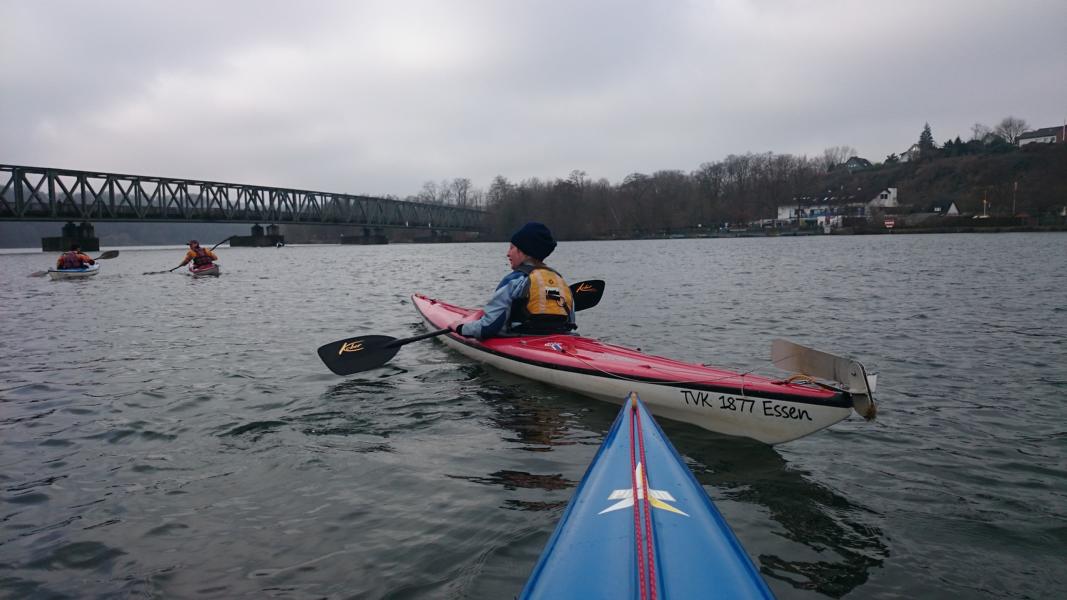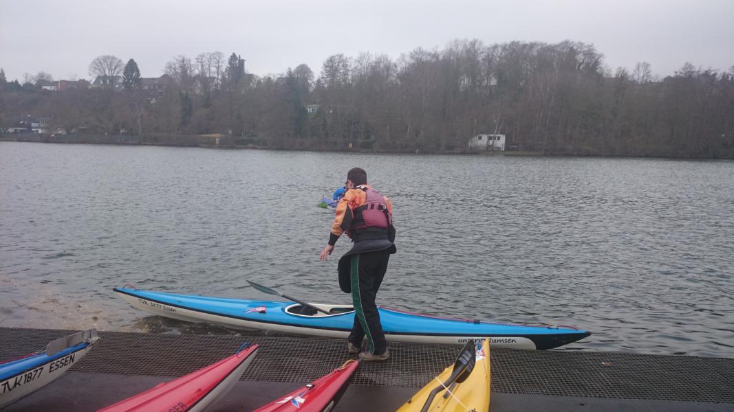 Nach einer gefühlten Ewigkeit war ich mal wieder mit meiner Schwester und meinem Schwager (und dessen Verein, dem TVK Essen) paddeln. Wir fuhren ihre Hausstrecke, eine Rundtour auf dem Baldeneysee. Praktischerweise konnte man zum Umziehen die Umkleiden des Vereins benutzen. Endlich im warmen die Klamotten wechseln.