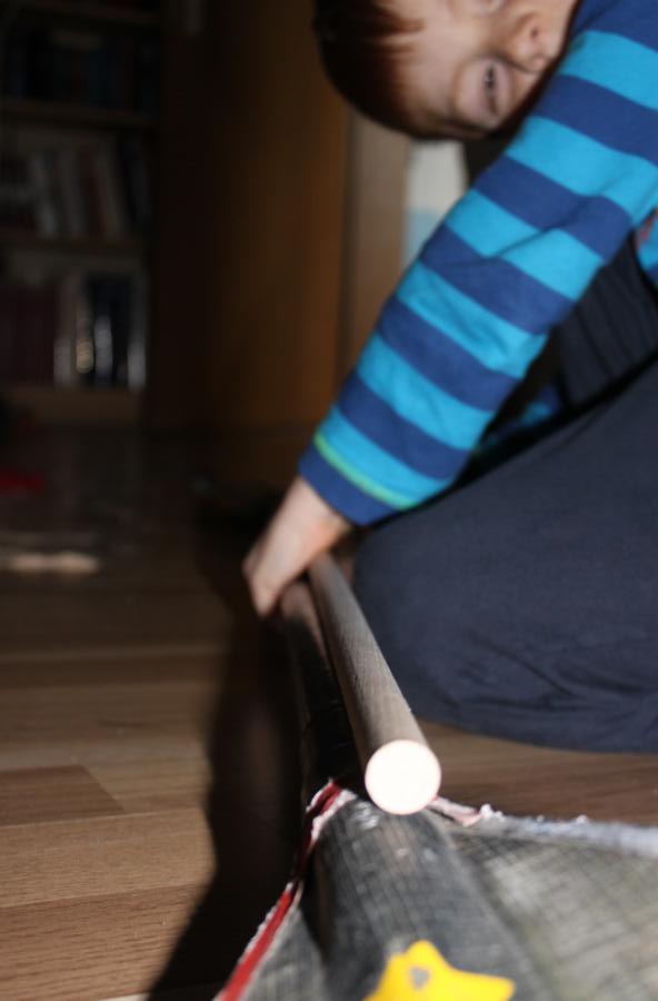Leider ist das Paddel während Cousin Jonas es hatte bei einem Unfall kaputt gegangen. Daher musste ich für Jakob ein neues Paddel basteln. Hier die Anleitung.