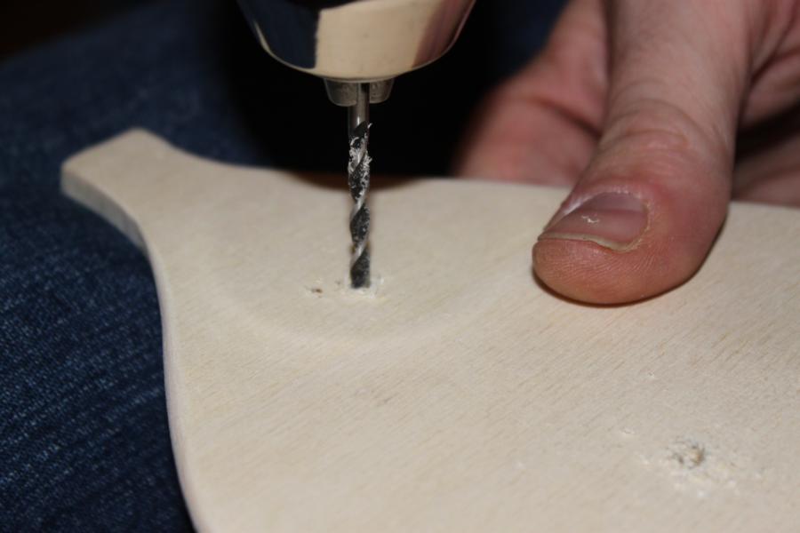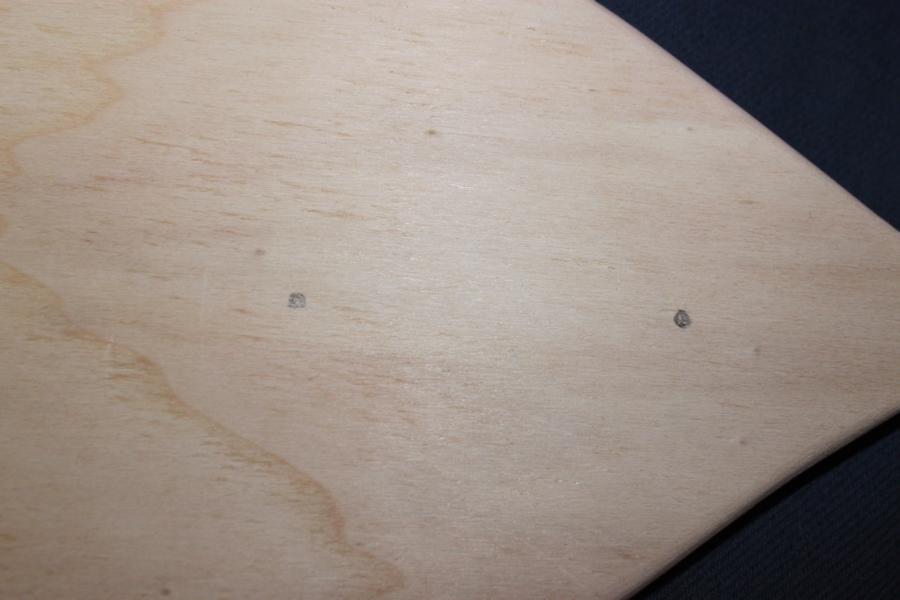Damit das Paddel richtig stabil wird, wird das Blatt an den Schaft geschraubt. Dafür erst die Löcher anzeichnen (2-3 pro Blatt)…