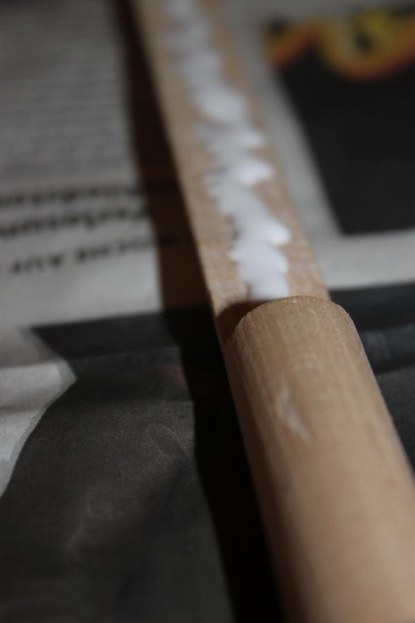 Bevor man die zweite Seite macht, muss man noch die richtige Drehung anzeichnen. Dafür hält man den Stab auf einem anderen Paddel mit der gewünschten Drehung fest und zeichnet dann an.