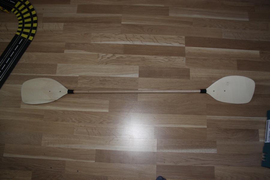 Ein kleiner Test zwischendurch. Das Paddel liegt gut in der Hand. Wenn die Blätter auch lackiert sind, wird der Schrumpfschlauch mit dem Heißluftfön auf dem Übergang befestigt.