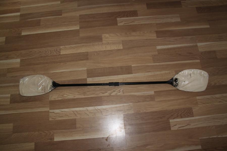 So sieht das Paddel zusammengebaut aus. Noch ist der Schrumpfschlauch nicht fest, da das Paddel noch bunt wird.
