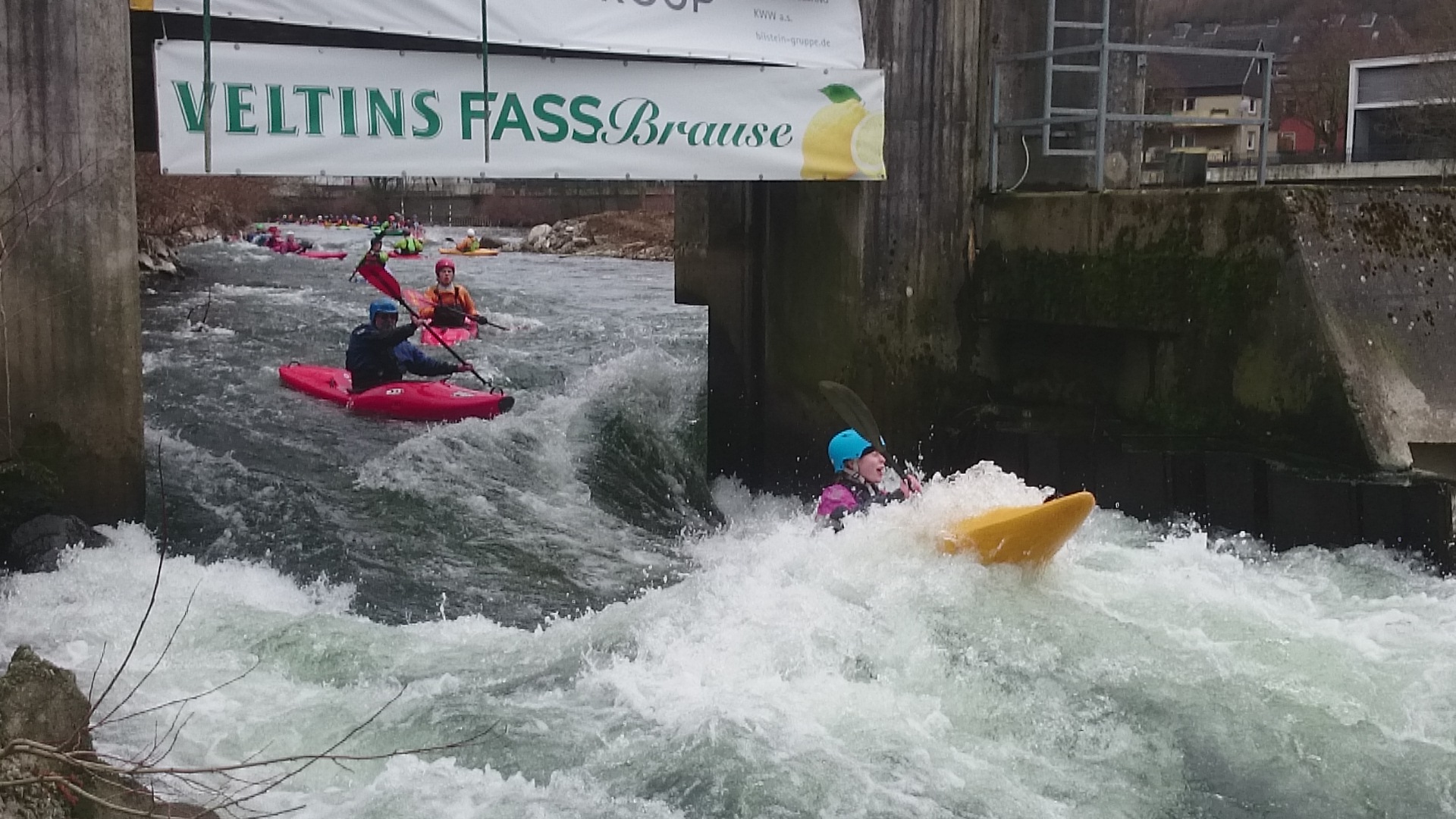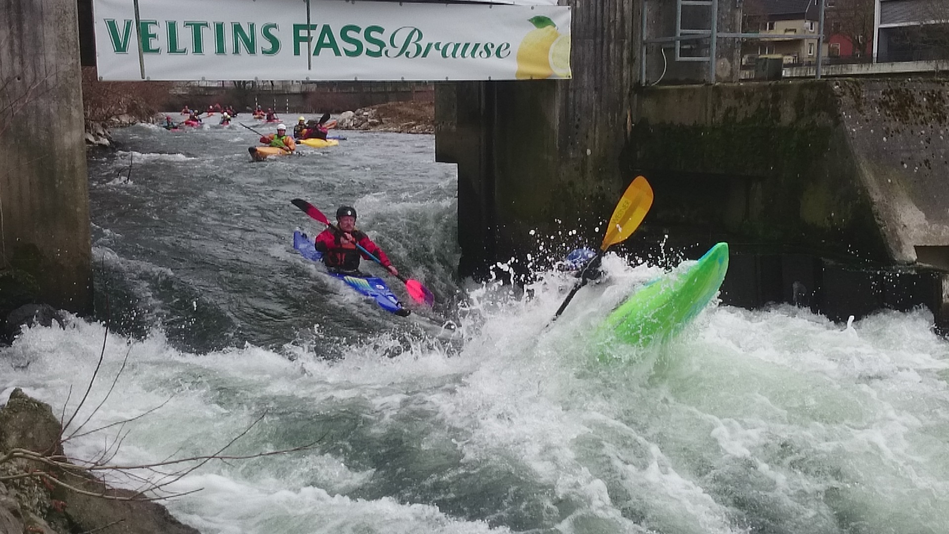 Mit Spannung wurde beim paddeln natürlich spekuliert, wie es zur Zeit in Hohenlimburg aussieht. Dass die Slalomstrecke noch gesperrt ist, hatte sich schon rumgesprochen. Die Frage war nun, ob wir umtragen müssen oder den rechten Arm fahren können.