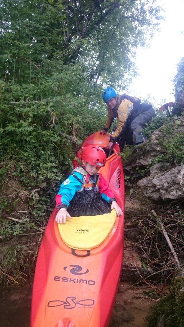 Als wir am nächsten Ort ankamen und dort wieder ein unkneifbarer Schwall auf uns wartete, strichen wir die Segel. Jakob war klitschnass und meckerig (was er beim paddeln eher selten ist) und Samuel war auch dafür aufzuhören, weil es ihm zu wild war. Paul joggte dann die drei Kilometer wieder rauf um das Auto zu holen.