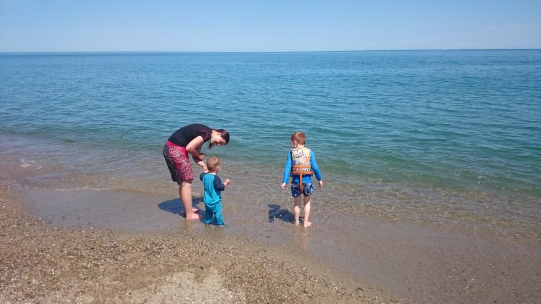 Unsere Pause machten wir dann einige Kilometer später an der Mündung eines kleinen Baches. Hier konnten Samuel und Jakob sich beim spielen nochmal extra verausgaben.