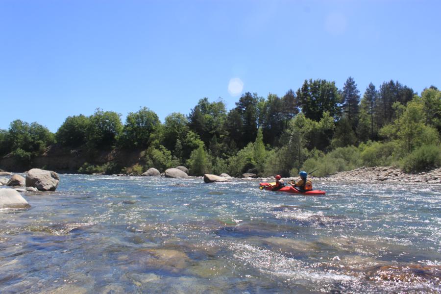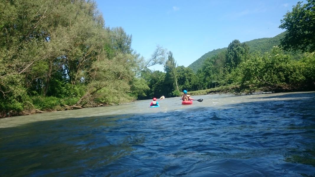 Auf dem Abschnitt, auf dem wir gefahren sind, sind kaum wildwassertechnische Schwierigkeiten vorhanden, dafür war die Strömung ordentlich. Kurz gesagt, eher ein Wanderfluss. Eigentlich wäre es ein idealer Fluss für Sammy im Einer gewesen, aber hinterher ist man immer schlauer.