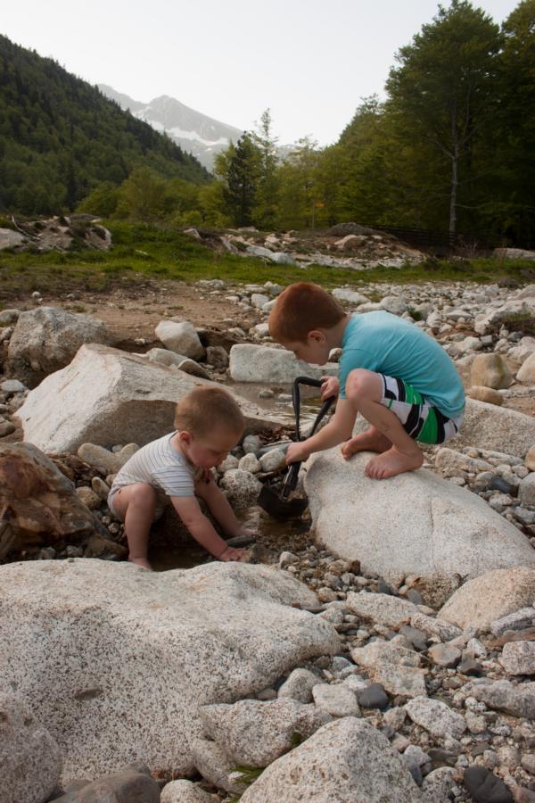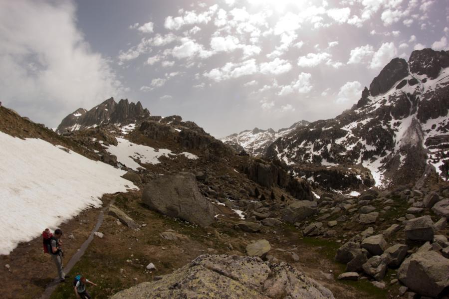 Wer mal in der Gegend ist, sollte auf keinen Fall versäumen, dort auch mal wandern zu gehen. Das Noguera de Tor-Tal führt zum Nationalpark Aiguestortes. Wir machten dort eine Tour bis zu einer leider geschlossenen Hütte (Samuel hatte schon mit einem Eis oder ähnlichem geliebäugelt). Dafür war der leichte Wanderweg wirklich einsam, wir haben keine zehn anderen Wanderer gesehen. Es ist also nicht so überlaufen wie in den Alpen teilweise.