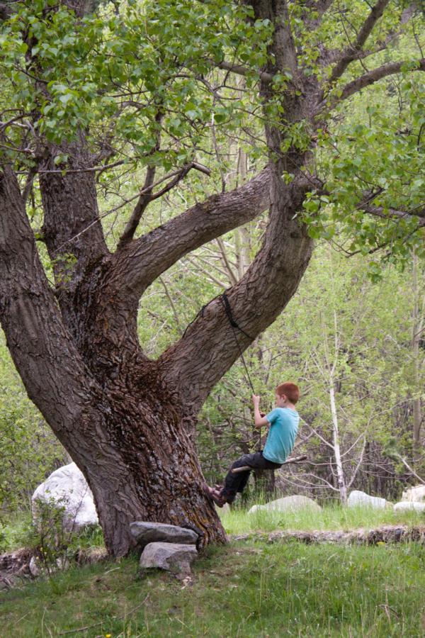 Abendbeschäftigung der Kinder: Samuel baut sich ne Schaukel…