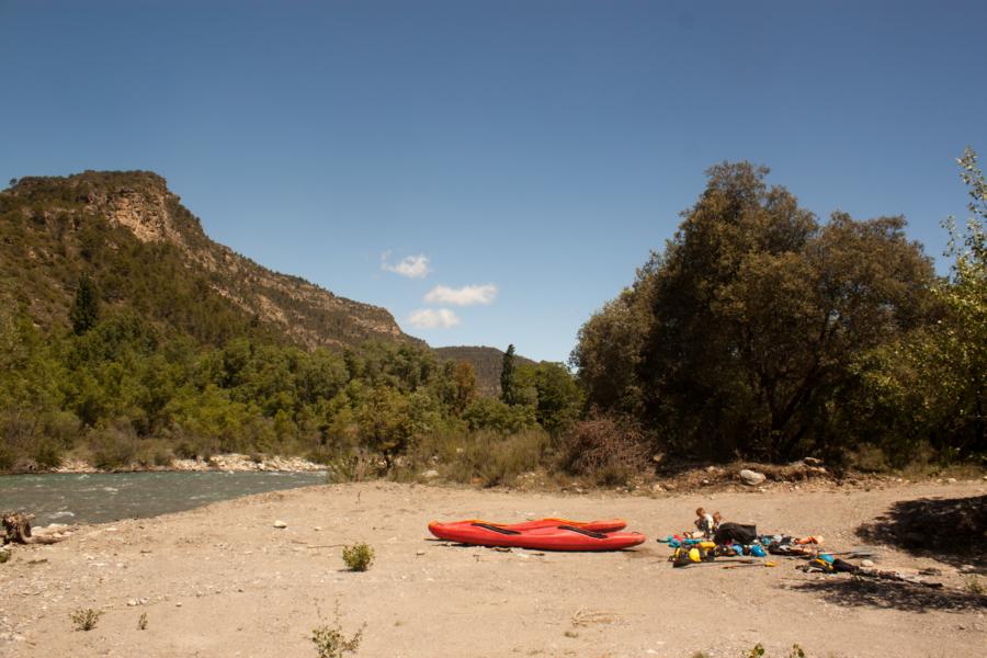 Mittags ging es dann weiter ins Aratal. Da es aber noch früh war und ich noch Bewegung brauchte, paddelte ich noch schnell die Araschlucht, auch um zu gucken, ob uns da eine Überraschung erwartet. Doch der Ara ist hier nicht sonderlich schwer, also bestens geeignet ihn auch mit den Zweiern zu befahren.