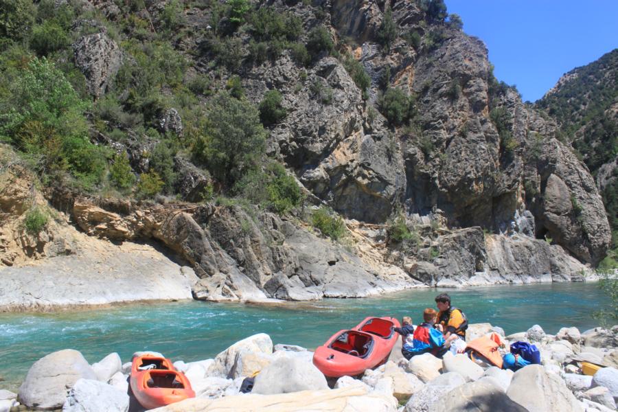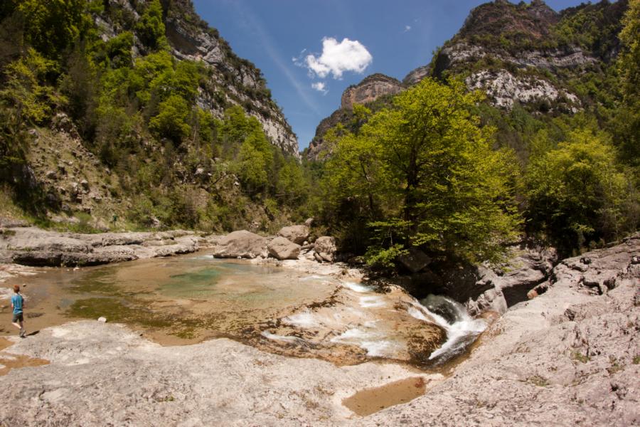 Eigentlich wollten wir nach dem Ara den größeren Rio Cinca paddeln, doch der Abschnitt, den wir uns rausgesucht hatten, hatte leider kein Wasser. In Lafortunada gibt es Wehr mit Wasserableitung, meistens soll man trotzdem im Mai noch genügend Wasser haben, da hatten wir wohl einfach Pech. Stattdessen gingen wir im nahegelegenen Nationalpark von Ordesa wandern. Der Canon de Anisclo ist wunderschön und ellenlang, theoretisch könnte man ihn bei viel Wasser sogar paddeln (schweres WW mit einigen Fällen). Doch leider ist das Paddeln im Nationalpark verboten.