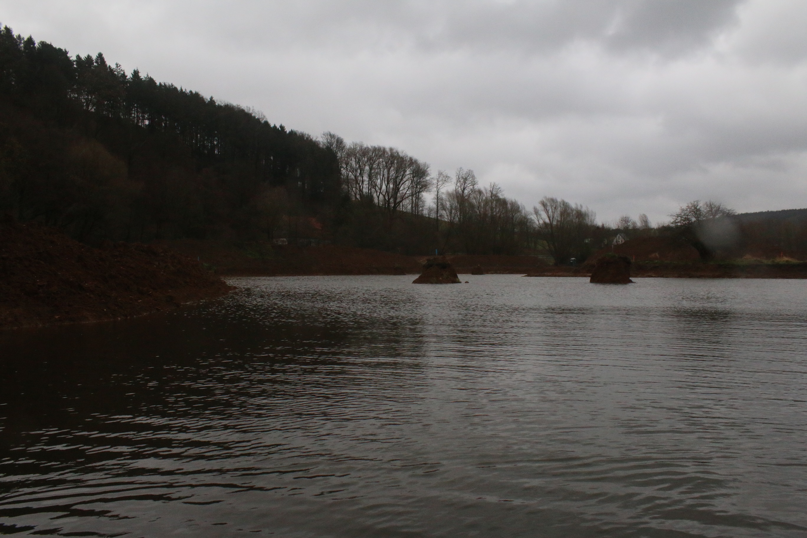 Die Röhrenbrücke wurde übrigens angelegt, damit die Bagger die Möhne überqueren können um dort die Renaturierung weiter voran zu treiben. Auf der linken Flussseite ist so ein riesiges Becken entstanden, dass man zur Zeit über einen kleinen Durchstich von der Möhne aus erreicht.