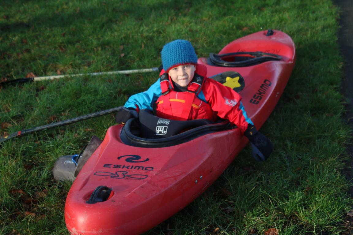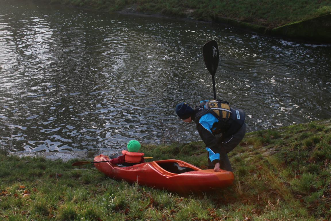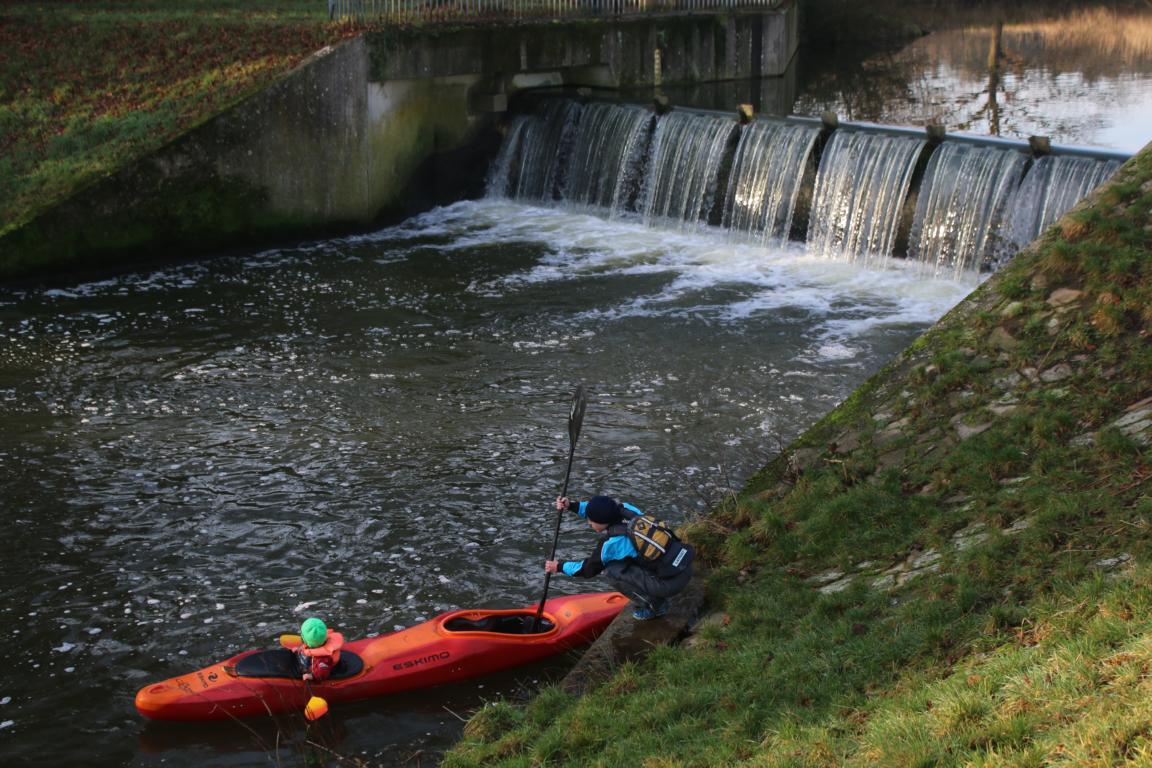 Im oberen Teil der Stever, Jakob kann auch im liegen Paddeln 😉