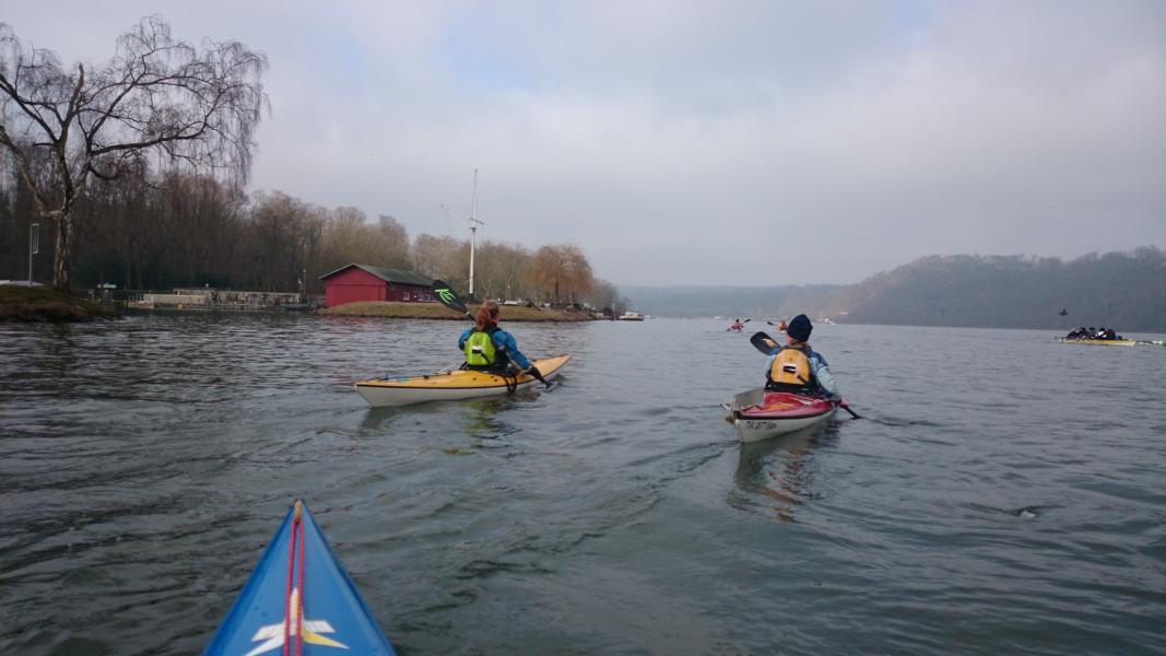 Für Paddler ist es auf dem Wasser natürlich viel interessanter und, trotz diverser Wassersportler, ruhiger. Am TVK Essen findet man eine gute Einstiegsstelle und begrenzt auch Parkmöglichkeiten (wobei die je nach Wetter sowieso sehr rar sind). Von dort aus paddelt man die Ruhr flussab bis das große Stauwehr ein Weiterpaddeln verhindert. Je nach Lust und Laune (oder Kondition) kann man bei RAWA Essen auf der linken Flussseite gut eine kleine Pause einlegen, bevor man sich auf den Rückweg macht.