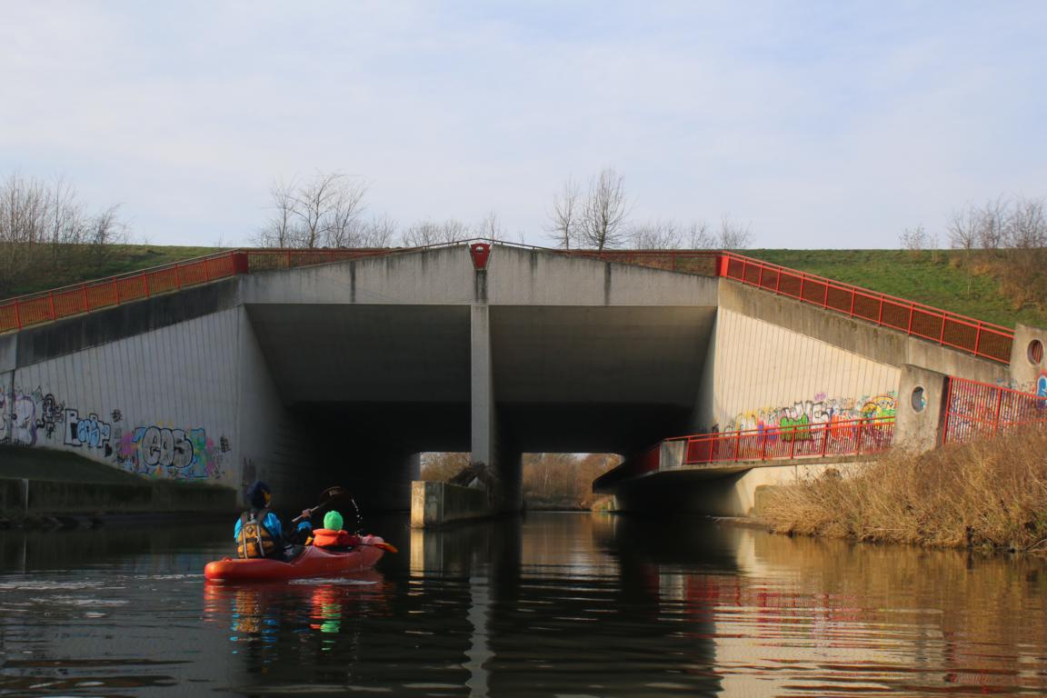 Ganz typisch für die Gegend unterquert man kurz vor Schluss den Dortmund-Ems-Kanal mit einer imposanten Konstruktion.