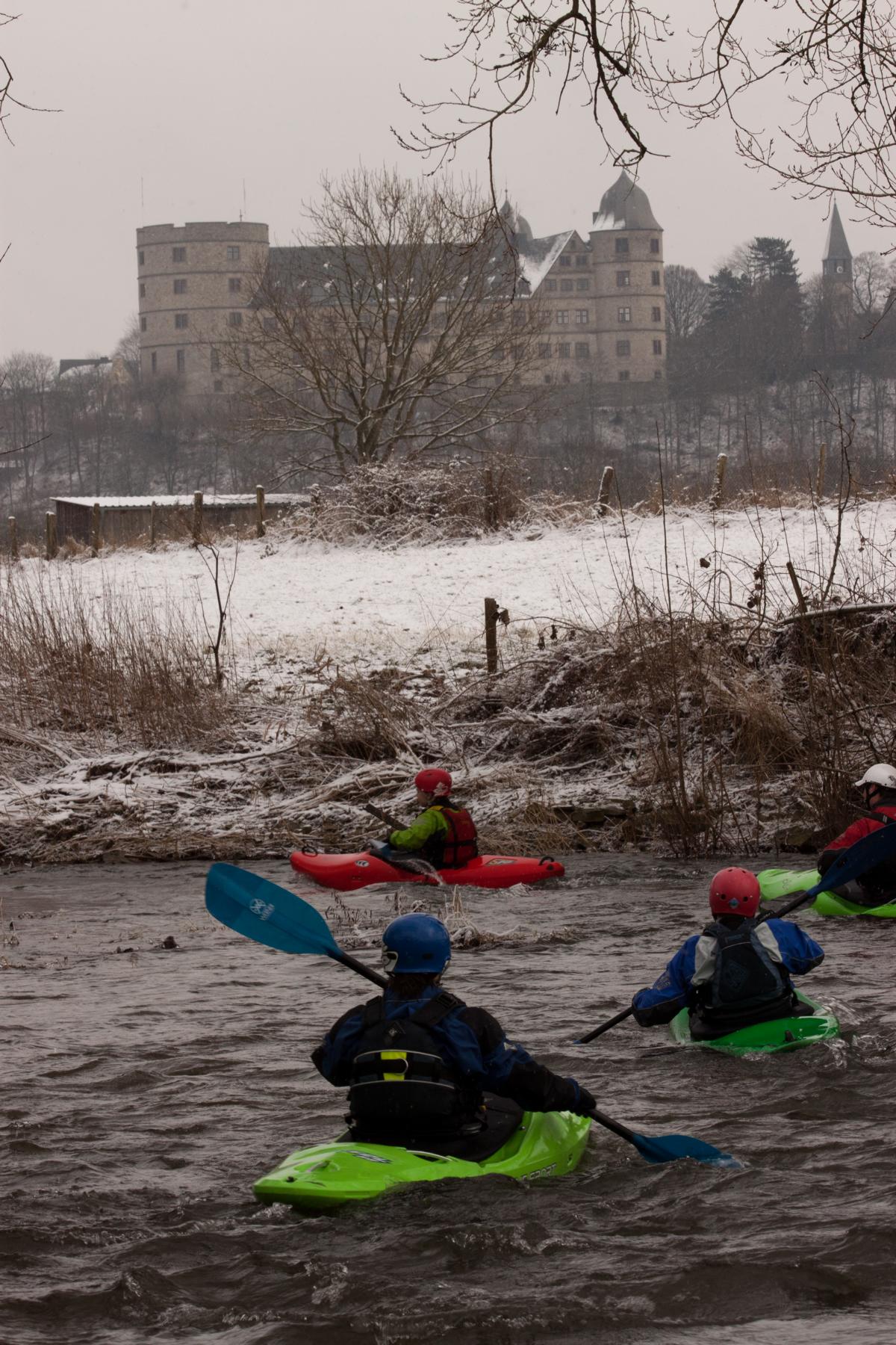 Abseits des Skirummels in Winterberg liegt die Orke. Der linke Nebenfluss der Eder liegt in in einem beschaulichen Tal mit nur kleinen Ortschaften. Vorsicht ist dennoch geboten. Nach der Mündung der Aar folgen einige Schrägwehre, die bei Hochwasser einen lebensgefährlichen Rücklauf bilden. Umtragen ist dann Pflicht. Wer sich bei viel Wasser die Strapazen nicht antun möchte, steigt erst in Dalwigksthal ein. Bis zur Mündung folgen nun keine Wehre mehr, dafür eine Burg (sehr sehenswert) und einige wuchtige Schwälle (sehr spaßig).