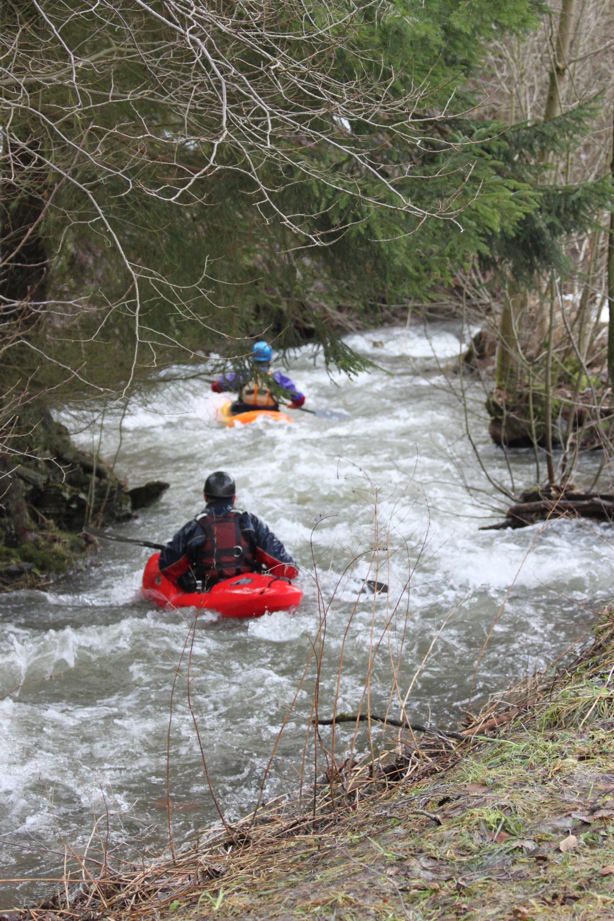 Es gleicht schon ein bisschen einer Pilgerfahrt, wenn man bei ausreichendem Wasserablass nach Helminghausen an die Diemel kommt. Paddler aus allen Richtungen kommend tümmeln sich am Einstieg oder suchen nach kaum vorhandenen Parkplätzen. Die Diemel ist massentauglich, ein Kleinfluss für Einsteiger sozusagen, außerdem ist sie durch den Ablass auch bei milderen Temperaturen zu befahren. Größtenteils weit weg von jeglicher Zivilisation schlängelt sie sich durch ein ruhiges bewaldetes Tal. Gute Strömung sorgt für ein schnelles Vorankommen, einige Wehre bringen weitere Abwechslung. In den letzten Jahren wurden einige Wehre renaturiert. Übrig geblieben sind dort nun verblockte Schwälle, die man gut als Übungsstellen nutzen kann.