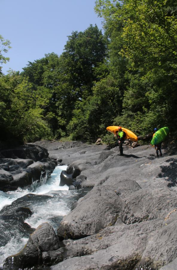 Schluchtstrecke, je nach Wasserstand schwerer oder leichter, um WW IV (X). Der, zumindest bei wenig Wasser, unfahrbare Schlitz kann vom Ausstieg her über einen Feldweg linksufrig besichtigt werden, auch um vorher die Ausstiegsstelle festzulegen. Schilder am Fluss warnen zudem zusätzlich. Eine Befahrung unterhalb von Pont du Moulin war früher auch möglich. Zur Zeit versperrt ein Felssturz den unteren Teil der Schlucht, unter anderem auch wegen Bauarbeiten am Felssturz. Die Befahrung ist offiziell verboten und die Polizei kontrolliert hier wohl auch öfter. Die Einstiegsstellen sind durch Schilder gekennzeichnet. Der Ausstieg an der Pont du Moulin ist schwierig zu finden, GPS-Koordinaten (44.895036; 5.842903) erleichtern das Finden.