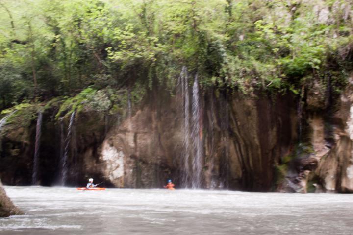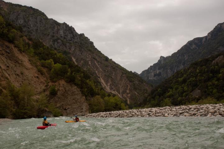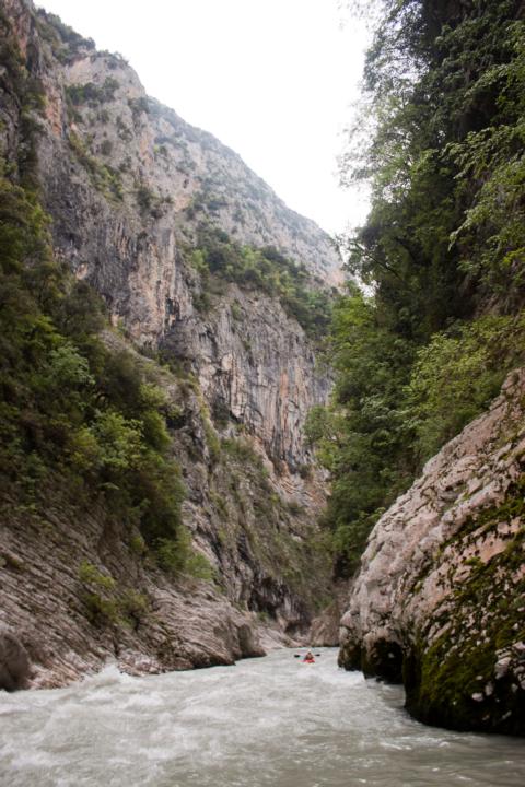 Zunächst auf kurzer Strecke WW III, dann leichter werdend. Immer noch einsame Schlucht, allerdings ein wenig offener als der obere Teil. Zeltmöglichkeit bei der Brücke von Plaka.