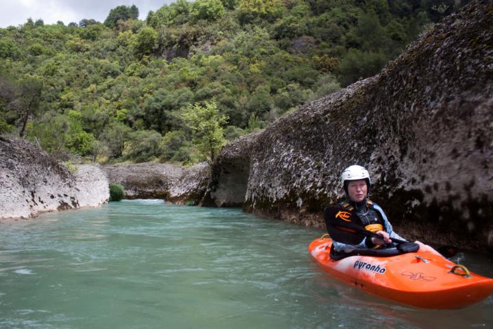 Zum Einstieg: s. Ausstieg oben. Der Erymanthos verläuft weiterhin in einsamer Schlucht, allerdings deutlich leichter als im Oberlauf (bis WW III). Man sollte dabei aber auch bedenken, dass sich der Fluss immer wieder in enge Konglomeratklammen eingräbt. Der Psychofaktor und Baumverklemmungen sollten bei den Schwierigkeiten also auch nicht außer Acht gelassen werden. Nach zehn Kilometern bei Elea öffnet sich das Tal dann (man kann auch hier aufhören) und die Schwierigkeiten lassen nach. Bei WW I-II schlängelt sich der Erymanthos nun durchs Kiesbett, viele Baum/Strauchhindernisse.